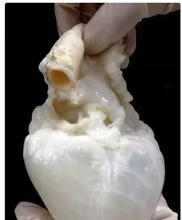 这个雪白的东西叫去细胞心脏,只留下蛋白质支架,像被冲洗到只剩骨架的海绵,医生说再把新细胞养进去,就能重新跳动,听着有点科幻,可台面上的这颗,安静得很真实。