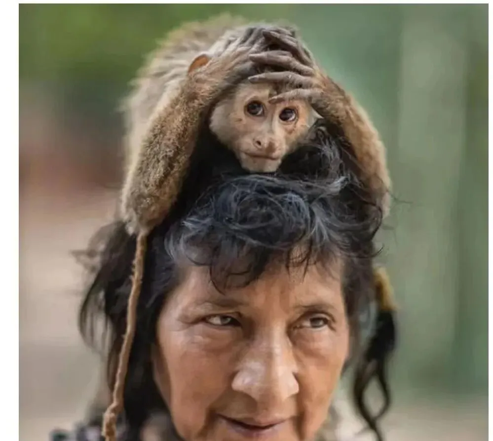 这位阿姨头上这小家伙是卷尾猴,当地人把它当宠物养,猴手顺着头发一扒拉,正经八百替主人按着发缝,阿姨笑起来,皱纹都被逗得弯了个角。
