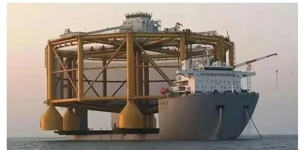 最后这个庞然大物是近海人造渔场在运输,半潜船托着它往前走,金黄框架像一座漂在海上的城市,工作人员站在甲板边,跟火柴棍似的细,听养殖队说十五个月能把一百多万条鱼养熟,这效率,放在过去想都不敢想。