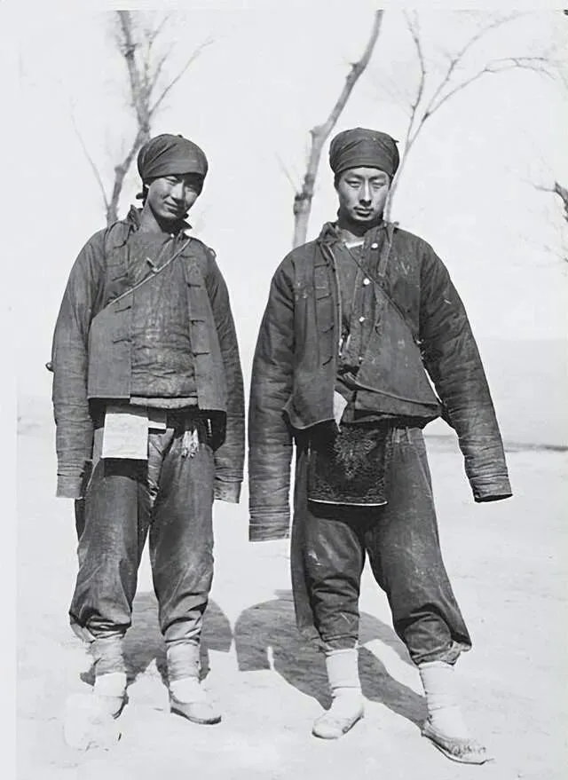 这张照片边上拴着马,人腰上绕的那条粗绳叫索具,麻绳拧得粗硬,冬天冻到像木棍,押人上路就靠它捆胳膊,打个活扣,手一拉就紧,那会儿脚程全靠走,驿路风沙大,差役把绳头塞进棉袄里,免得甩来甩去,后来火车有了车厢铁锁,这种麻索就少见了。