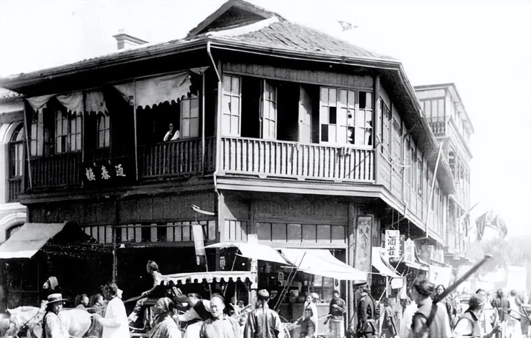 这家二层的叫茶楼,木栏杆围着转角,幔子半卷,里头有人探身望街,茶盅叮的一声敲在碟上,伙计吆喝一嗓子就跑楼下送水,放在现在,差不多就是我们的社区信息站。