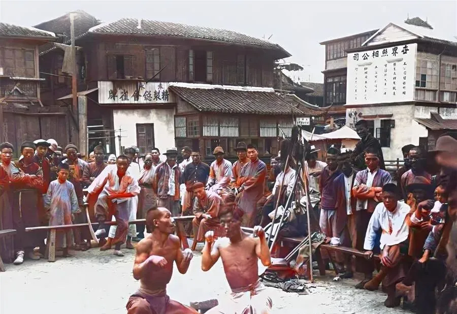 这群人围着看的,是耍把式的兄弟,光膀子拍胸口,砖头咔地一声在肩上碎开,旁边徒弟拎着盆收赏钱,爷爷说以前集市一热闹,全靠这些人撑场面,现在短视频里随手一刷,却很难闻到尘土味。