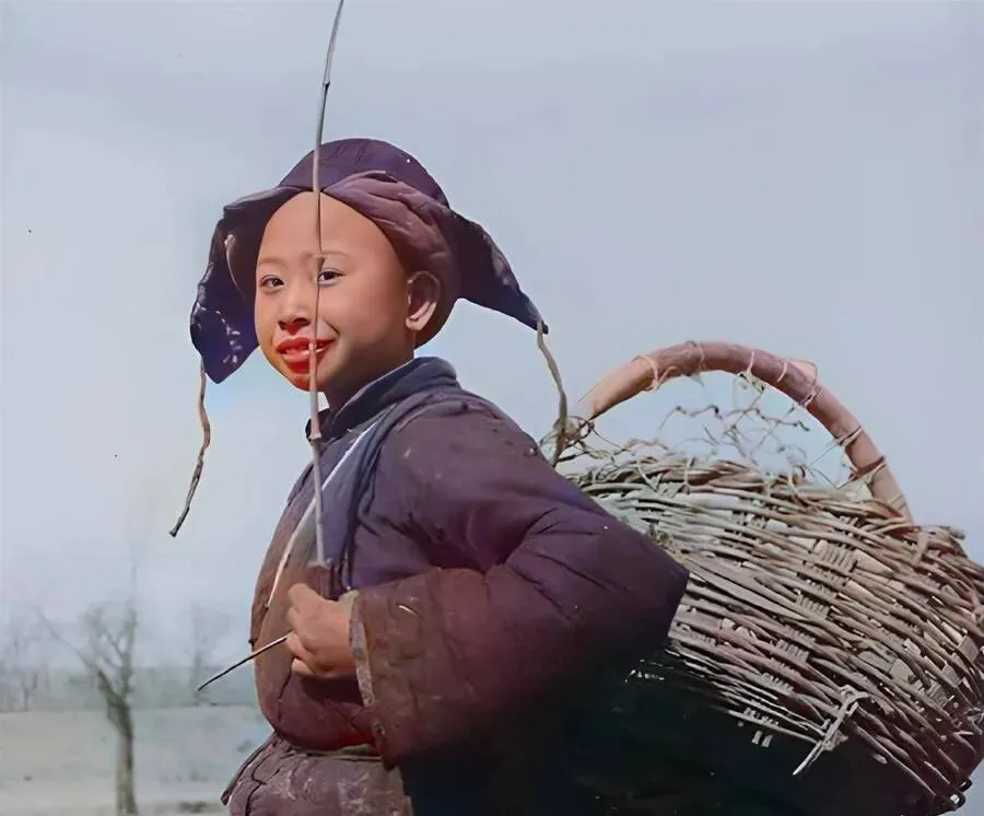这背着大柳筐的孩子,正往前赶路,筐口绑着细铁丝,帽檐压得低低的,脸被风一吹红扑扑的,妈妈看见这张照片只叹一声,不容易啊,那时候谁不是早早就懂得挣钱贴补家里。