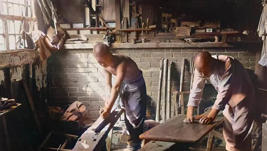 照片里两位木匠在推刨,刨花成一条条卷,落在脚背上痒痒的,窗台上全是角尺和墨斗,师傅把徒弟的手一压,说劲儿别撒在指头上,要顺着木纹走,这种唠叨听多了,手上就有了门道。
