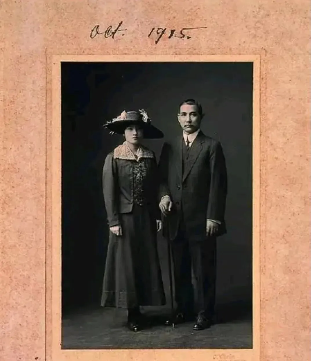这张老影楼合影规矩得很,黑布背景,硬挺的西装和宽檐花帽,旁边是米色卡纸写着年月,站姿正正的,手杖点地,眼神却有点倦,像是忙里偷个空来照相,外公以前把结婚照裱在木框里,一学期擦一次灰,他说,人能留下来的,多半就是一张纸一段话。