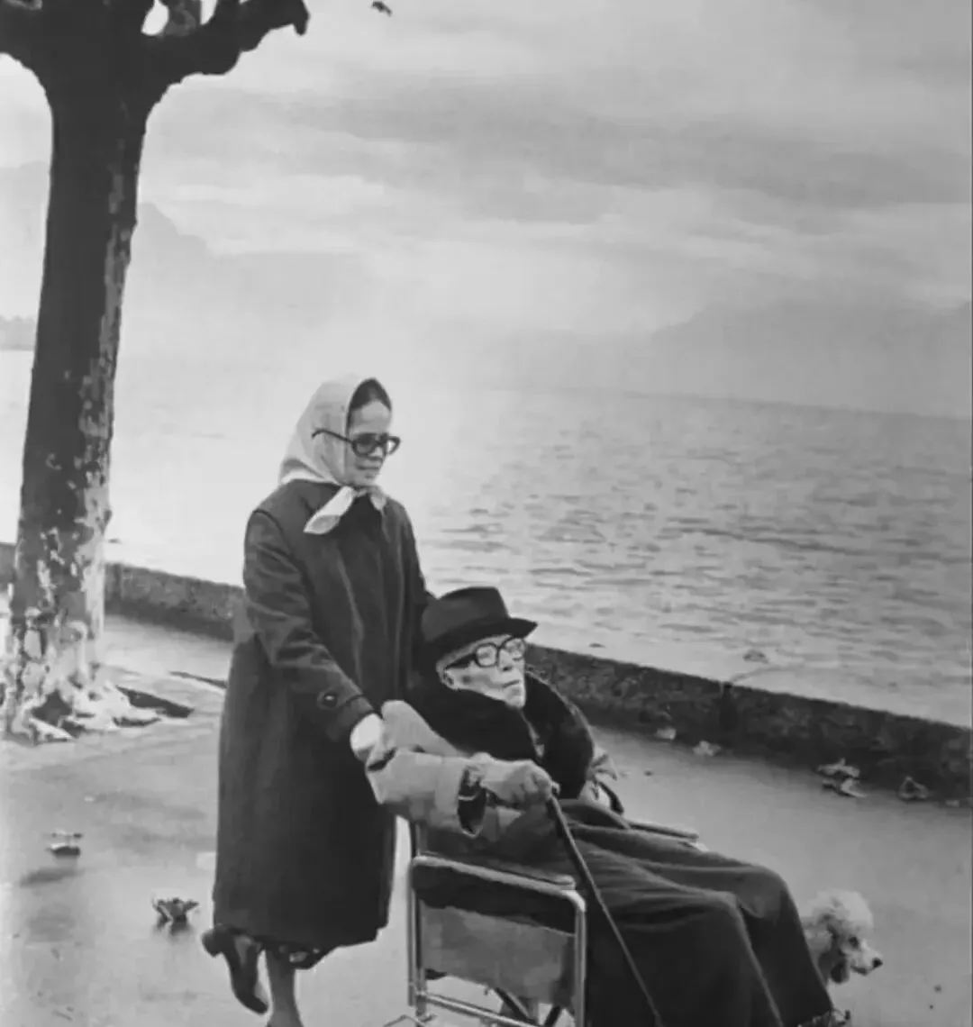 这个画面很安静,树干光秃秃的,湖面平得像一张铝片,黑帽老者坐在轮椅里,身上的大衣裹得严实,推车的人弯着腰笑着说话,地上落叶被车轮压成一道弯,我妈看见这张就说,爱有时候就是慢慢推着走这么远。
