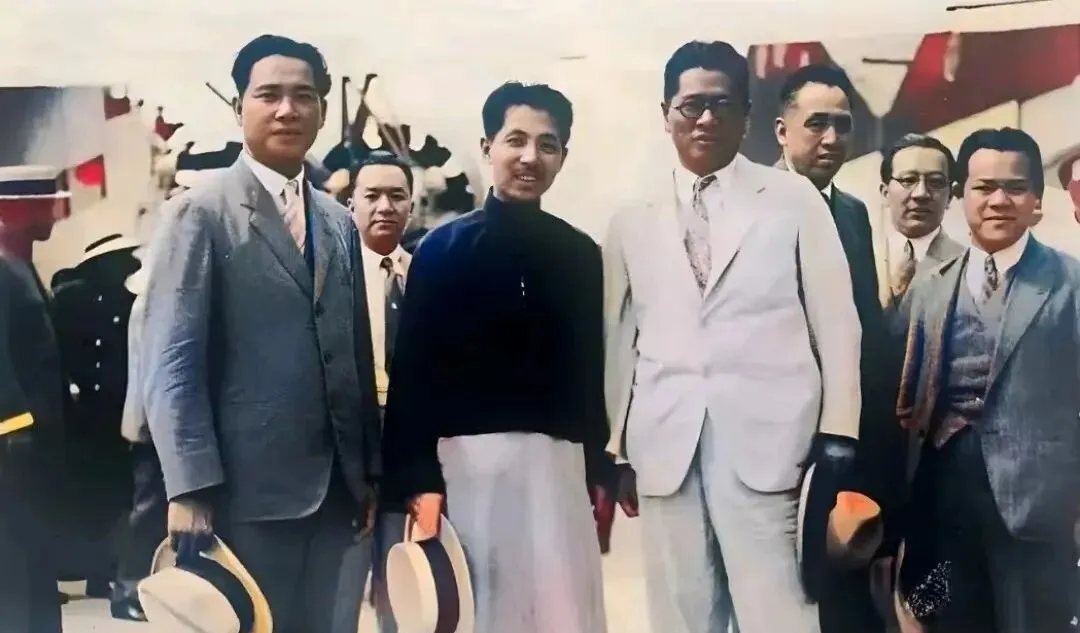 这幅合影里男士多穿浅色西装与草帽,站在舷梯旁边,居中的人穿深色上衣笑得很开,后面人探出半个肩膀,画面很拥挤却不失礼貌,那年头拍合影是大事,排站位能磨半天,舅舅总爱打趣说,帽檐压得好,照片就不怕老。
