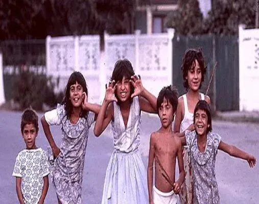 面对摄影师的镜头,小孩子们摆出了姿势。