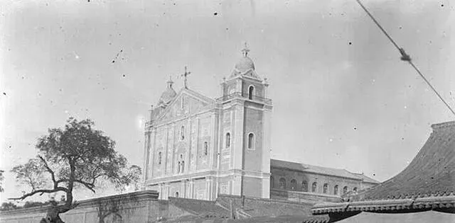 这个白墙高窗的洋楼叫天主堂,立面竖直,窗口拱圆,屋脊顶着两个小穹盔,教堂后身长长的一溜,像拉开的风箱,钟声一响,附近的鸽子吓得扑楞楞起飞,奶奶说第一次看见十字架,心里直嘀咕,这玩意儿真高啊。