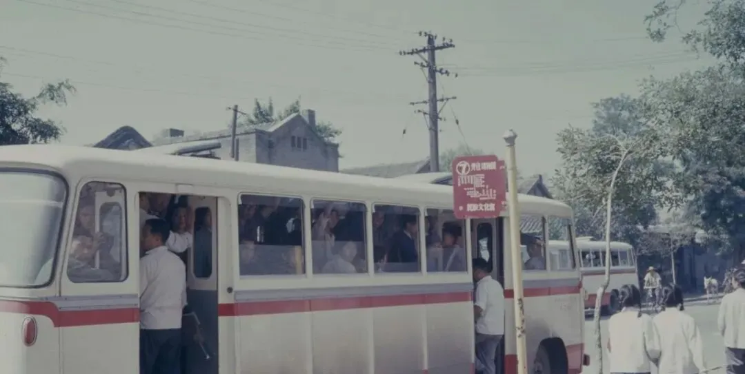 这个长条白车叫公共汽车,铝合金的窗框配一圈红腰线,车门还是手拉折叠的那种,站牌上印着线路和终点,字不大却清清楚楚,车里人挤到窗子上,胳膊撑着玻璃,车下还有人探着身子往里看,听妈妈说那会儿上车要抢点儿,司机一脚油门,挂在门边的家伙得小心别被门夹了。