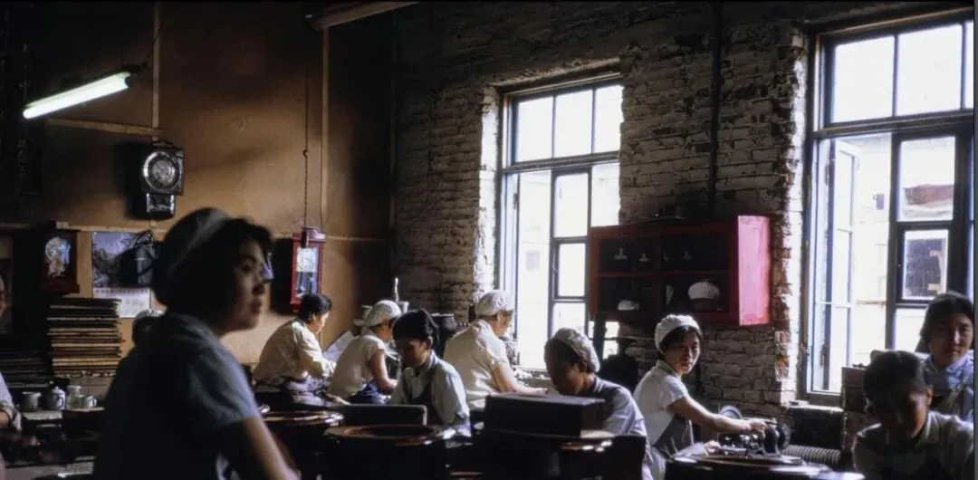 这间砖墙屋叫小作坊,窗台上摆着茶缸,电灯管在头顶嗡嗡叫,女工们围在案子边团团坐着,袖口卷到肘下,手上捏着细活,墙上挂着日历,翻页角翘起来,开着的窗子把风引进来,纸张的味和浆糊味混在一起,像我小时候写作业时母亲衣袖上的味道。