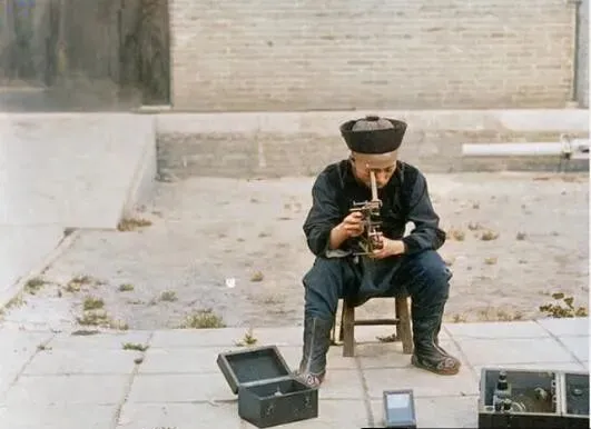 清末彩色老照片:北洋水师学堂学生使用测量仪器;手持“十三太保”的清军官兵;外国传教士医院的病人。