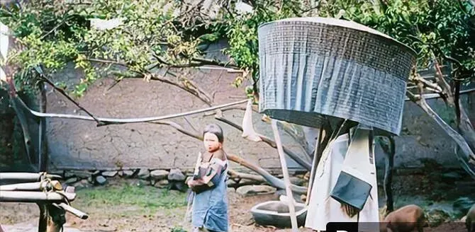 这个院子里树荫一落,地上尽是斑驳,竹篾搭起来的圈,像一口倒扣的大簸箕,旁边挂着布袋和扇面,孩子攥着衣角往这边看,没喊,也没笑,就是好奇,这种慢,是夏天的慢,是等饭熟、等风停、等人回来的慢,现在我们看时间看手机,分秒都掐得很细,老照片里的影子告诉你,慢也不是偷懒,是把日子煮透。