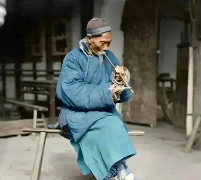 这个老头嘴里叼着的也叫烟管,细竹杆穿过袖口,烟袋锅在掌心里转来转去,他的棉袍蓝里透灰,袖子肥大,整个人像被冬天塞进棉絮里,动作却很利落,轻拢慢捻抹复挑,火柴一擦亮,火星在风里“嗤”地一声,爷爷说那会儿抽是一口缓气,一口解乏,地里干到腰直不起来,蹲在门槛边点一锅,脚底下的土都能香一阵子,现在烟摊子多了,烟也花哨,可那种慢悠悠的工夫味儿,真是找不回来了。
