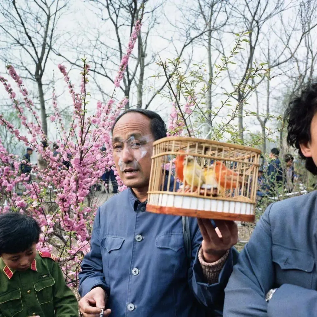 图中竹条编的圆罩叫鸟笼,手心托着,木底盘白汪汪一圈,笼里黄羽红羽嘁嘁喳喳,桃花正开,老哥们拎着笼子走两步停两步,抬手就逗两句,爷爷笑我小心别把门撞开,那鸟要飞了可追不上,现在玩儿的换成了蓝牙音箱,清脆的声儿还在,来源不一样了。