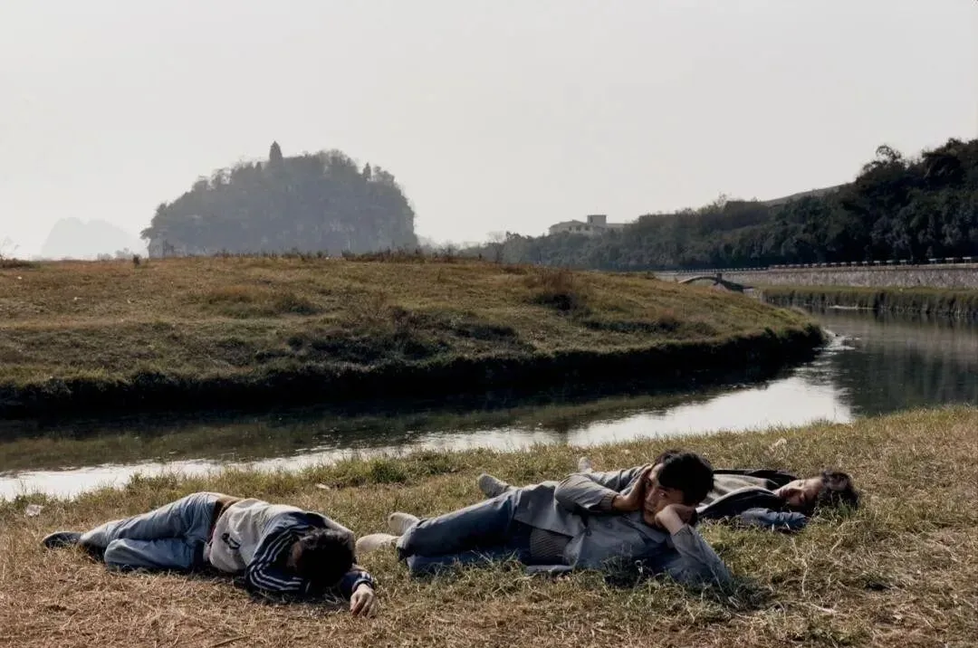 这三个人的姿势叫摊大饼,胳膊当枕头,校服拉链开到胸口,身边是一条慢吞吞的小河,太阳不辣,人也不赶,老师看见了会吼一声快起来别着凉,我那会儿也这么躺过,醒来脖子晒出一道白印,现在想在草地上睡一会儿不容易,心里有事的人躺不平。
