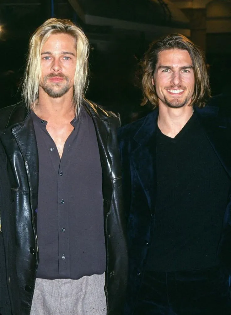 照片捕捉了汤姆·克鲁斯与布拉德·皮特出席1994年电影《夜访吸血鬼》首映礼的瞬间。