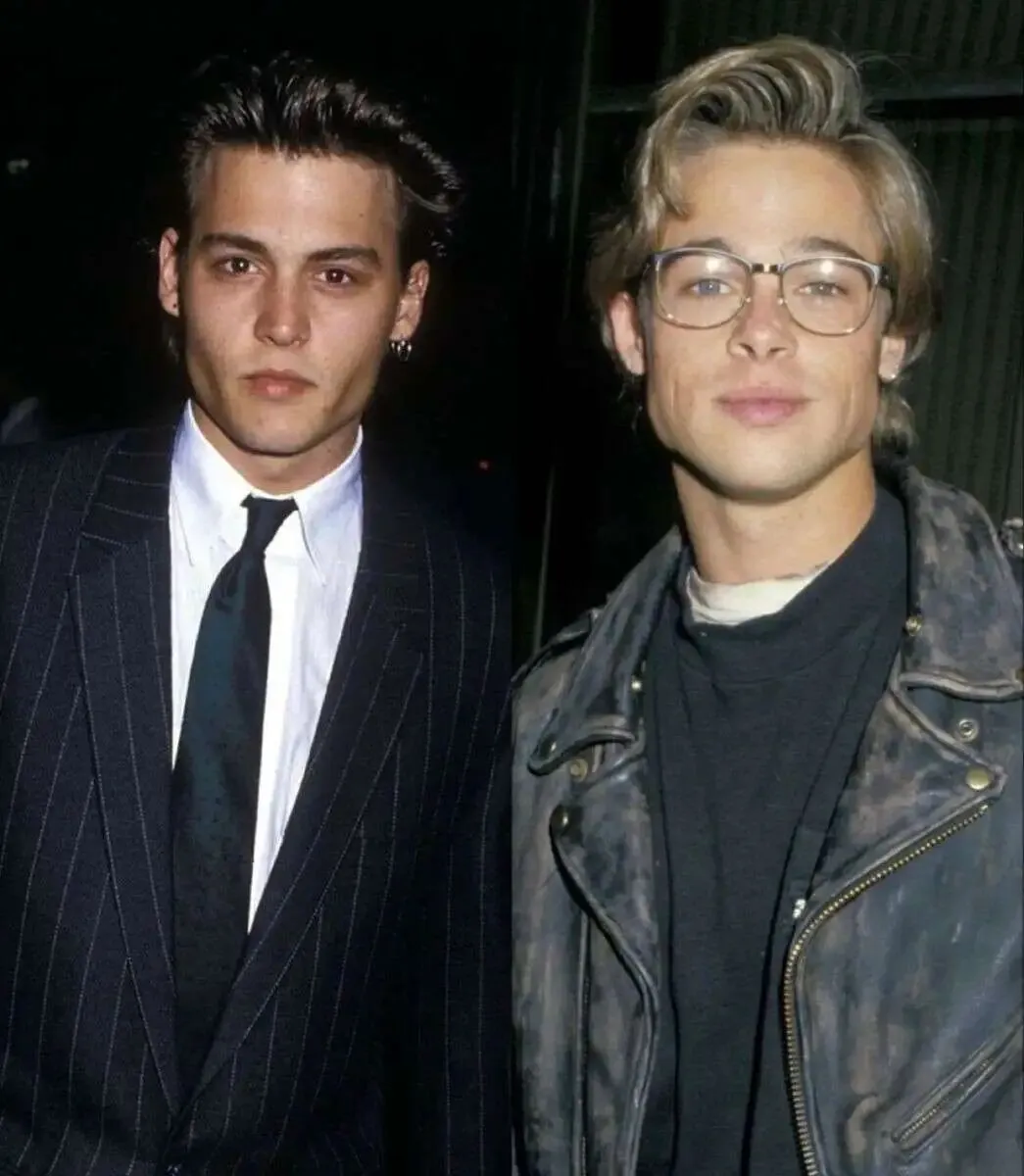 照片中是布拉德·皮特与约翰尼·德普出席90年代初中期好莱坞活动的画面,正值两人即将登顶巨星的时期。