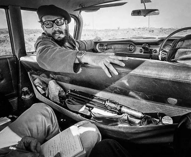 照片中是菲德尔·卡斯特罗1959年革命胜利后,乘车巡游解放后的古巴。