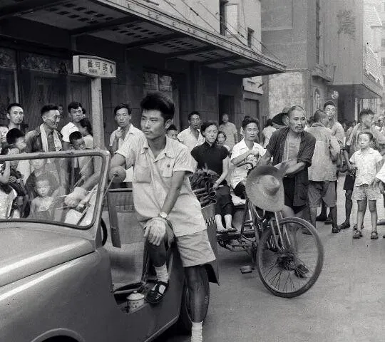 这台小个头四轮车就是小吉普,车门半开,司机手搭在窗框上,路边一圈人伸长了脖子,大家伙盯的不是马力,是新鲜劲,孩子们踮脚,老人咂舌,上海向来爱看热闹,哪怕只是一脚油门的声音也能把巷子叫醒。
