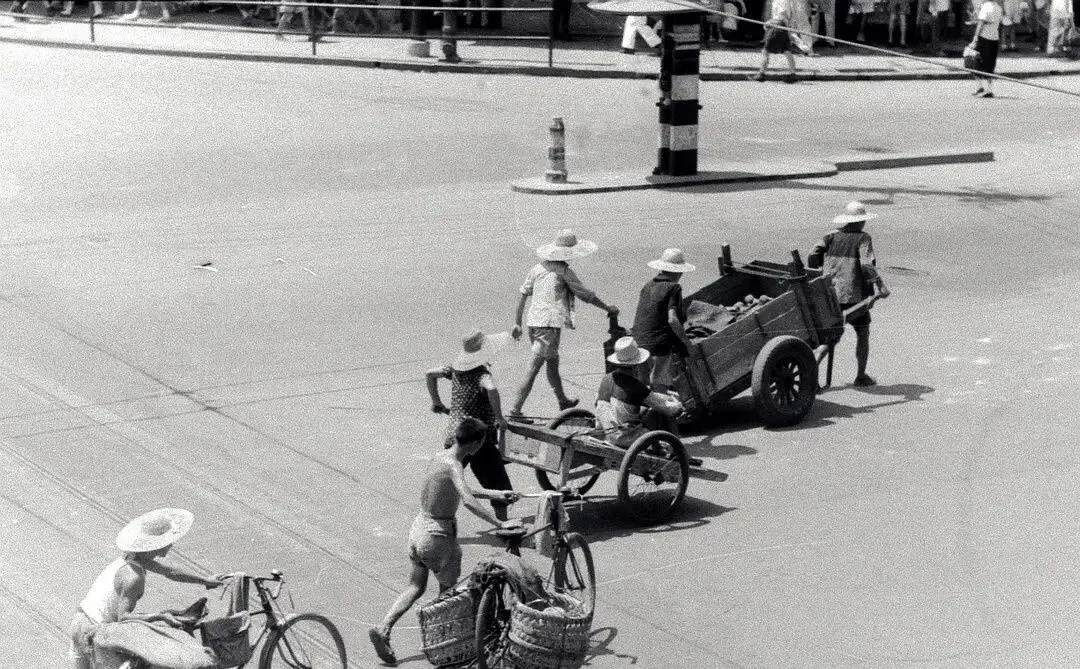 这组黑白照片是东德访问团按下的快门,街头人潮一涌而上,汗衫短裤草帽凉鞋,朴素得很却精神饱满,我翻着看了一遍又一遍,才发现当年的上海并不只是一幅老电影滤镜,它有热气,有吵闹声,有笑场和小脾气,和我们以为的“老派腔调”不太一样。
