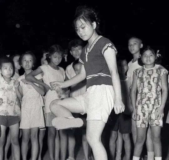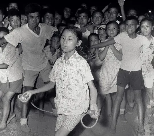 图里这根绳子就是跳绳,地上扬起一点粉尘,女孩抿着嘴角,脚跟一弹一落,绳影在脚踝处画了个圈,旁边的大人把胳膊横着挡人群,生怕挤坏了节奏,数数的孩子嗓子都喊哑了,还得坚持到满分才肯散伙。