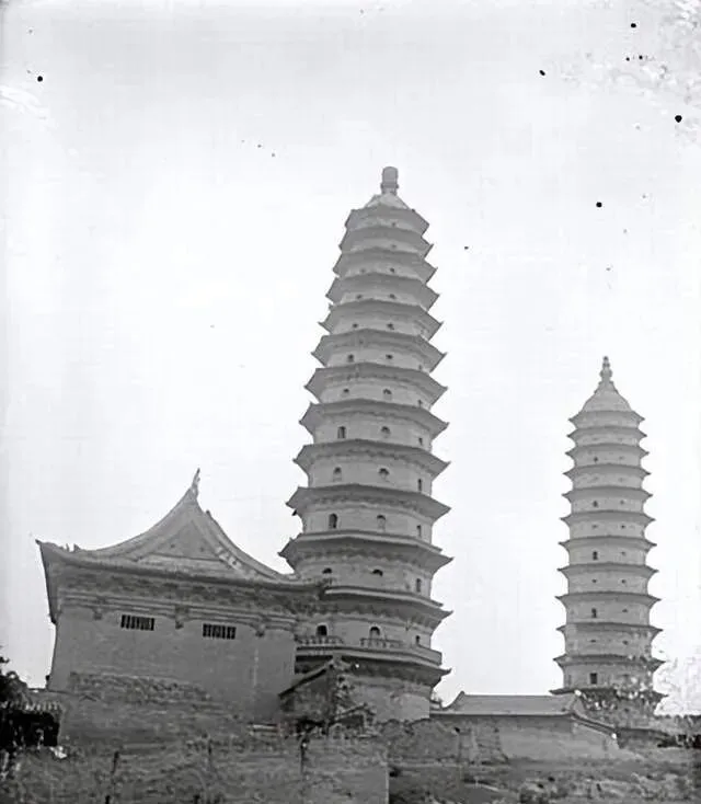 这两个并肩站着的叫双塔,塔身一格一格像抽屉,风吹来把檐角上的铃铛摇得心口发痒,墙脚处堆着旧砖,不急不慢的样子,像知道自己会被重新码好。