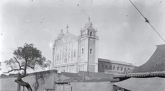 这栋洋面孔叫教堂,白墙直上,半圆窗像一双温和的眼睛,屋脊有十字架,旁边是灰瓦院墙,树影压过来,像水墨里一抹淡墨,城里人说星期天能听见钟声,从城根一路滚到菜市口。