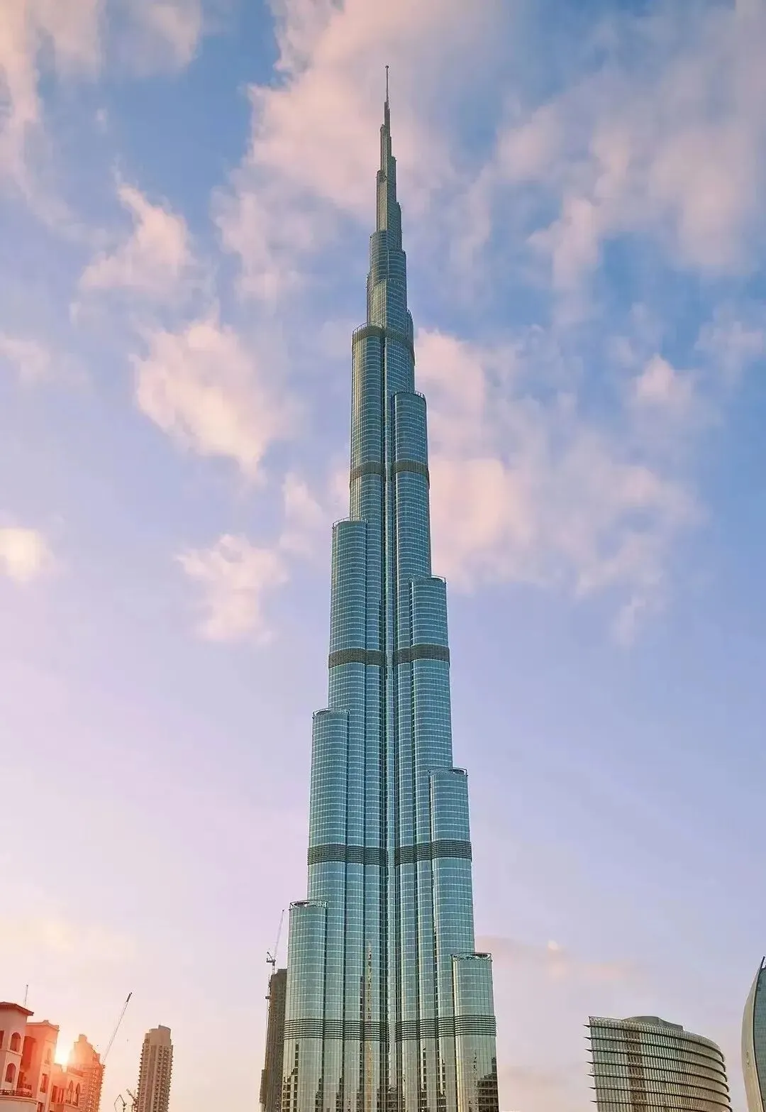 图中这栋通体发亮的高楼叫哈利法塔,像一支层层递进的银色长笛,阳光一打就冒冷光,玻璃幕墙一圈一圈往上收,顶端细得像针,第一次仰头见到它的人,下意识就会屏住呼吸,妈妈说要是站在观景层往下看,车像蚂蚁,人像芝麻,现在的城市喜欢拔地起高楼,以前我们认路靠牌坊,现在抬头只要找它就不迷路。