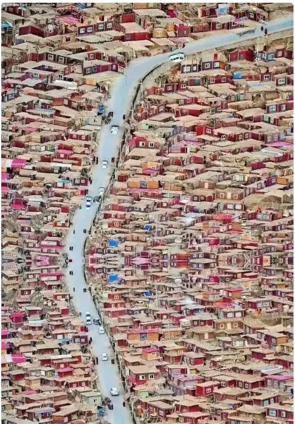 这个坡上挤得满满当当的红色小屋,叫山谷人居群,木板外墙被风吹得发旧,屋檐边挂着五彩经幡,蜿蜒的灰色小路像一条蛇,车慢慢爬,人慢慢走,奶奶看了直叹气,说以前咱村也这样挨着住,炊烟一响彼此就知道谁家煮饭谁家煮茶,现在楼里住久了,邻居在不在家都难说。