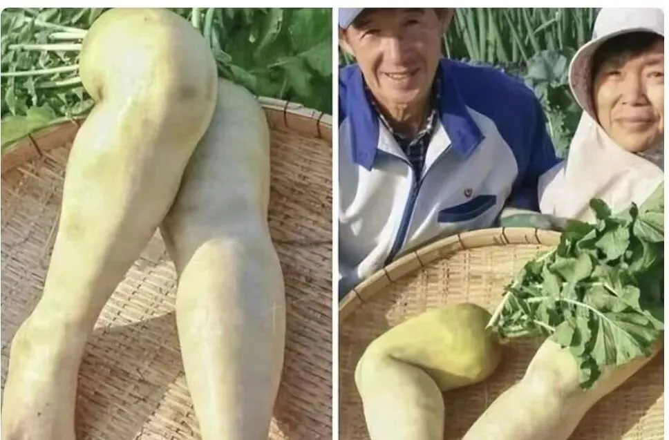 这个古怪的蔬菜叫模具萝卜,表皮青白,形状像交叉的两条腿,拿在手上还有点温乎劲,伯伯笑着说这是放在硅胶模具里长的,拔出来就成了这造型,以前吃萝卜讲究脆甜清口,现在还得看“长相”,这世界变花哨了,餐桌也跟着有了新花样。