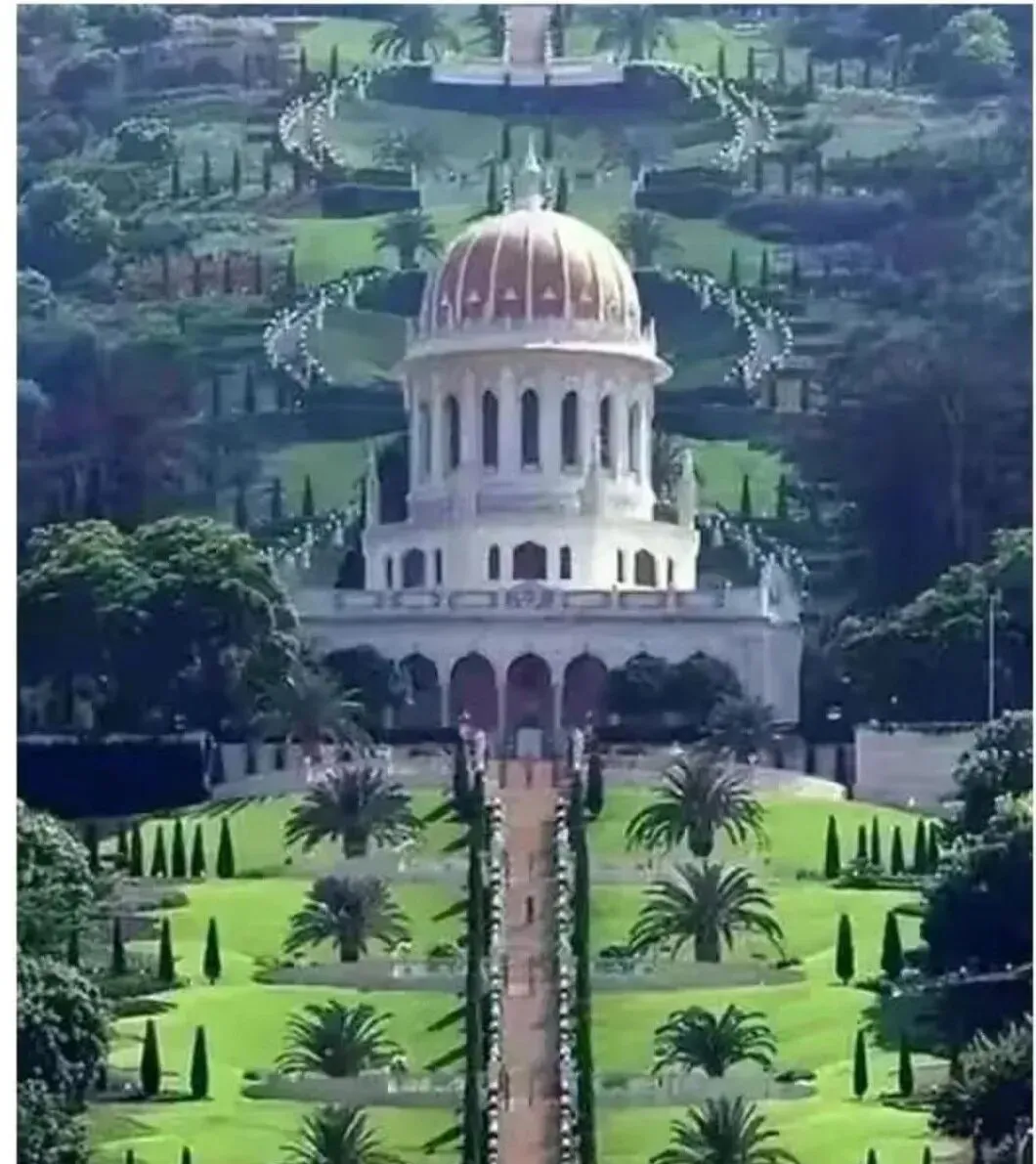 这处层层台阶推上去的绿园叫巴哈伊空中花园,中间一座白色圆顶,金边在阳光下发亮,左右的棕榈像列队欢迎,走在石砌小径上,脚底有细沙的摩挲感,姐姐说这地方讲究对称,站在任何一条线上往前看都是一条直心轴,以前我们逛公园只看花,现在还会学着看秩序和比例。