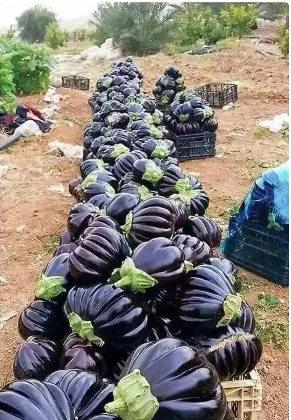 这堆黑紫色鼓囊囊的叫南瓜茄子,一条条筋把果面勒出褶,提起来沉沉的,切开里头还是白瓤,我妈看了直夸,说这做烧茄子可顶事,油一见它就往里钻,以前咱家菜园里都是瘦长的,现在品种多得眼花,市场一圈逛下来能遇见半个菜谱的新鲜劲。