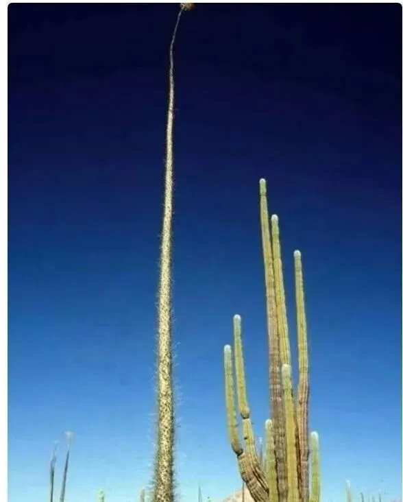 这根瘦高到离谱的家伙,是沙漠里能长到十几二十米的柱状仙人掌,旁边的几株做了参照才知道它到底多高,竖直往上窜,顶上像支针,妈妈看了笑我,别凑太近,扎一下难受三天。