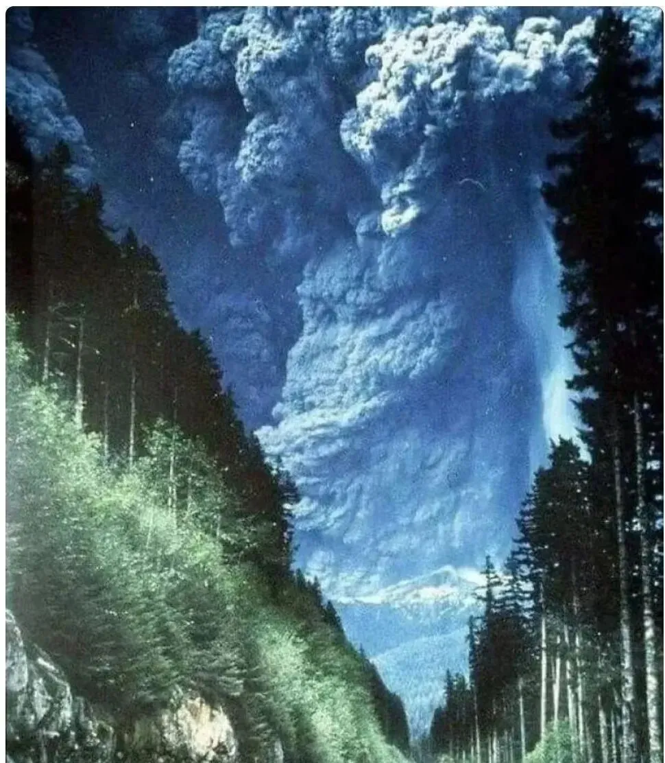 这团卷曲翻涌的庞大云头,是火山喷发抛出的火山灰和水汽,颜色发蓝偏灰,像在天空里拧成一根麻花柱,林子尽头看过去,只剩下肃静两字,那时候的天灾来得猛,现在监测手段多了,消息也快了,可真到面前,还是得敬畏。