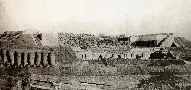 院里空地不小,角楼、墙体、弧口各就各位,位置卡在港口喉咙眼上,谁想往里插就先得掰开它的牙,后来被一通猛火撬开门栓,里里外外都见了底。