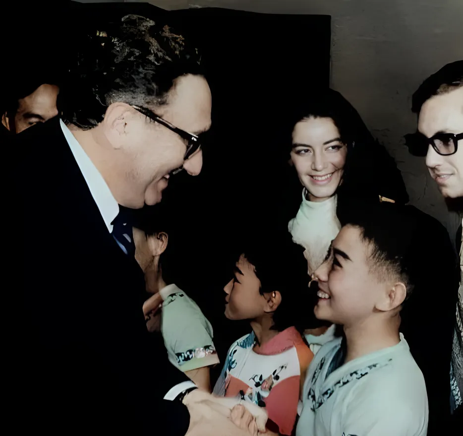 上色老照片:李小龙全家福;李连杰与基辛格握手;大地震后哭泣的女孩;香港嘉禾电影公司片场吴宇森。