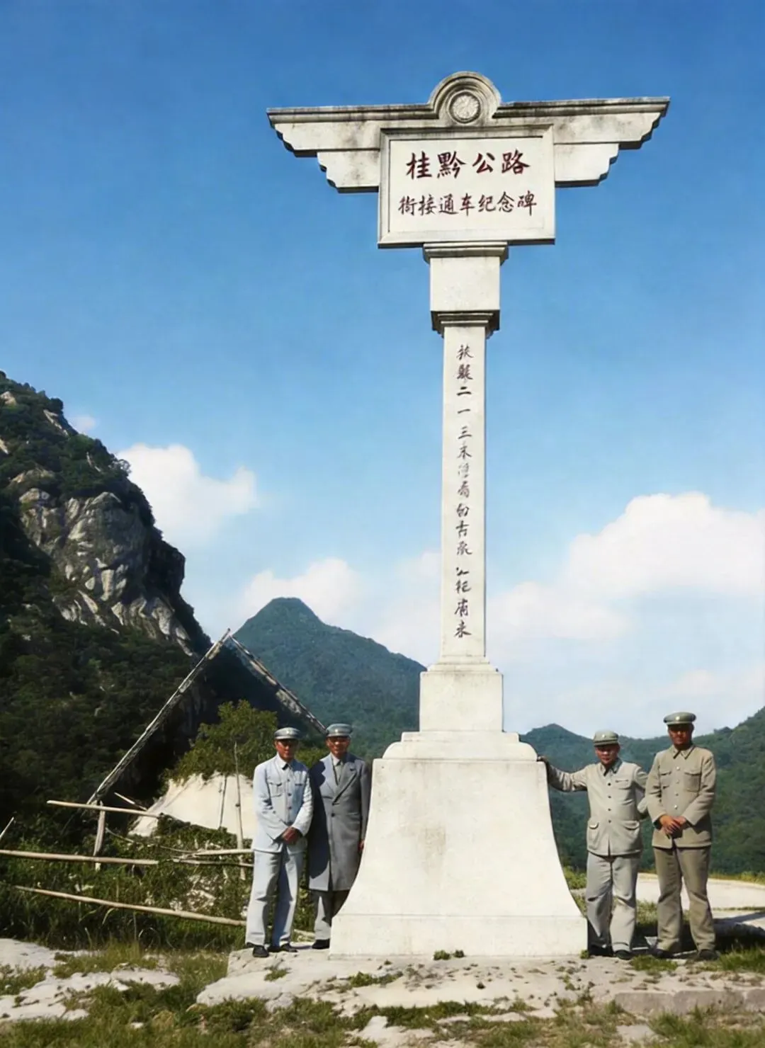 1934年,桂黔公路丹池公路局在桂黔交界的公路旁建碑↓