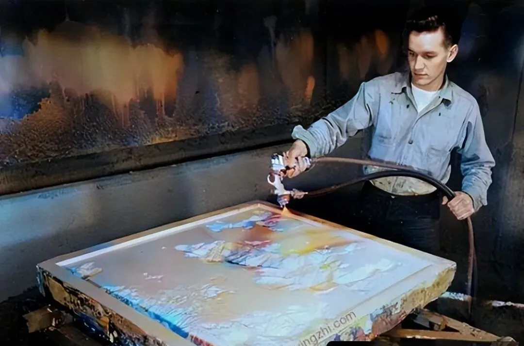 师傅在模框里刷的这层叫隔离涂层,像在白布上染开一片底色,手腕一翻,边角抹匀了,后面那口大槽里泡着清洗用的水和器皿,那会儿的厂房不讲究花里胡哨,只要工具顺手就行。