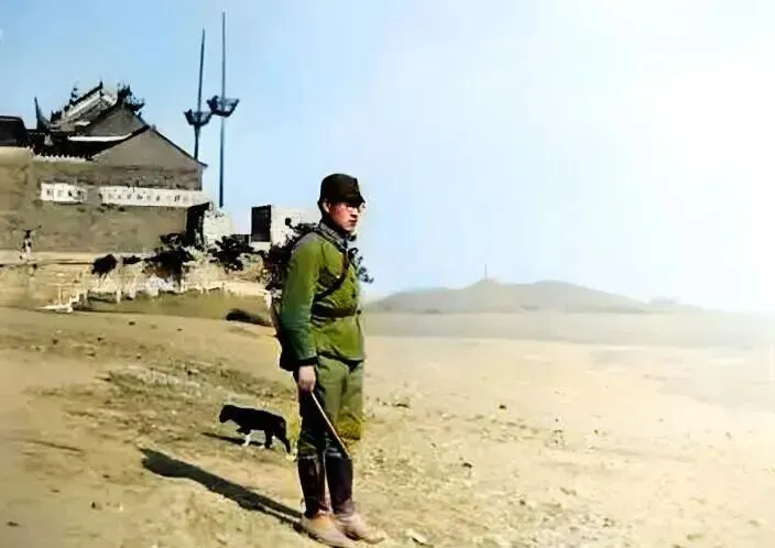 也许是为了查看地形,或者想炫耀自己的侵占能力,他在中庙前拍下了这张个人照。那时候,很多日寇都会把侵华时期拍的照片寄回家里。