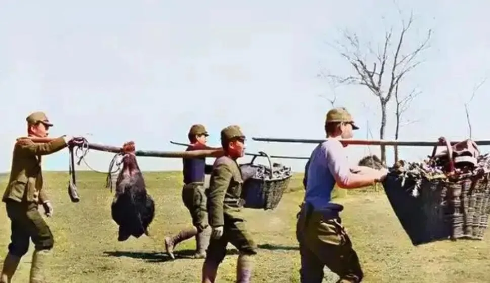 不仅如此,在抗日战争时期,有些日寇为了少带东西,常常一边行军一边抢夺百姓的物资。老百姓的锅碗、盛水的木桶,几乎都会被他们强行拿走。