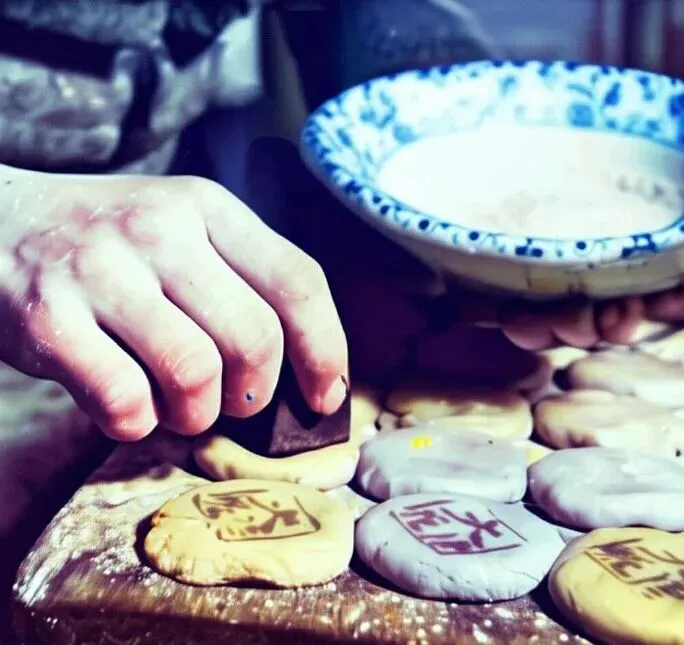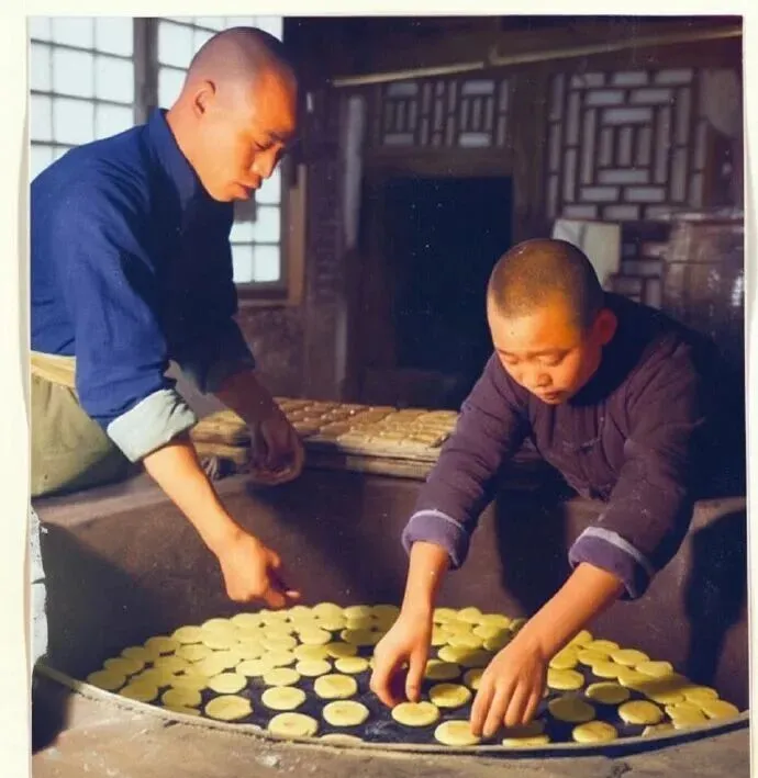 (上图为民国时期北京月饼制作)
