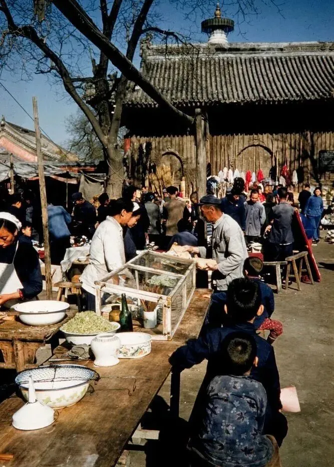 (上图为50年代白塔寺庙会小吃摊)