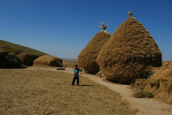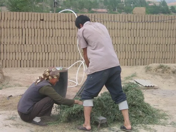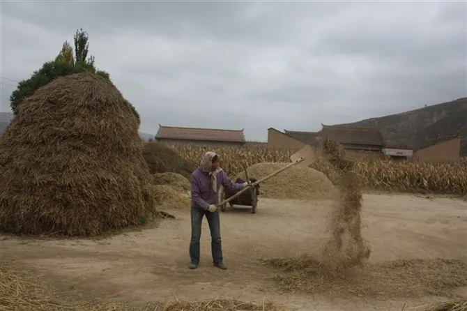 铡草,是我们祖先一直延续到现在的生活方式,远处的基子,是农家人盖房砌墙的材料,至今还有人在用。