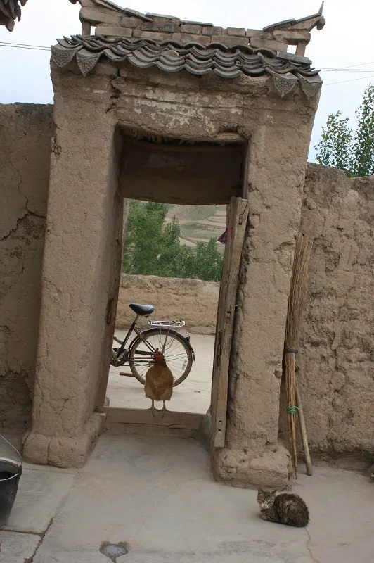 农村家门,鸡、猫突出的浓浓乡土气息