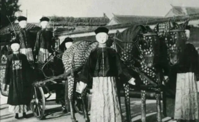 慈禧葬礼上的纸人,有太监有清兵,美其名曰给慈禧去阴曹地府打前站。这些纸人纸马和真的一般大小,扎的都非常逼真。
