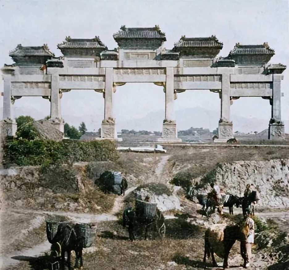 这座五间的叫石牌坊,柱脚卧狮,额枋满是缠枝纹,脚下是牛车人的尘土道,穿过牌坊是城,回头就是野地,风一吹,穷人挑担晃,富人坐轿稳。