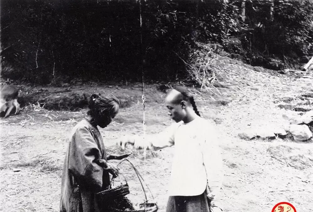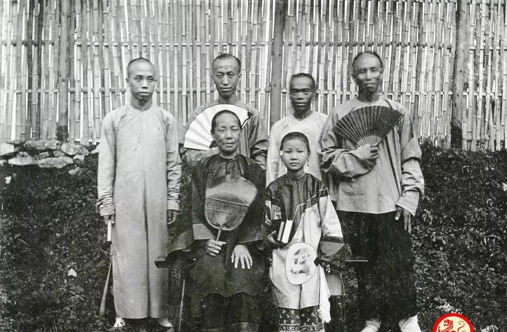 这个小合影叫“传教士一家”,最扎眼的不是他们的脸,而是清式长衫与折扇,连孩子也穿了宽大的袍子,坐板凳靠竹篱笆,像极了邻家做喜的留影,他们硬把自己往在地里靠,想让人信赖,可在市井里,“像咱又不是咱”,这劲儿最要命。