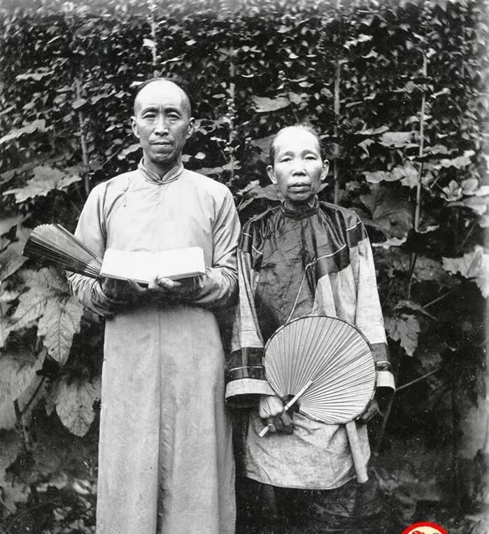 这对站在藤篱下的叫教民夫妻,一人一本经卷,一人一柄蒲扇,男人的袖口有补丁,补得很利落,女人的袖沿滚三道黑线,手里扇柄磨得发亮,说明常用,爷爷说,以前庄稼汉拿书站着,总被笑装腔作势,现在谁见谁读书,谁还笑谁呢。