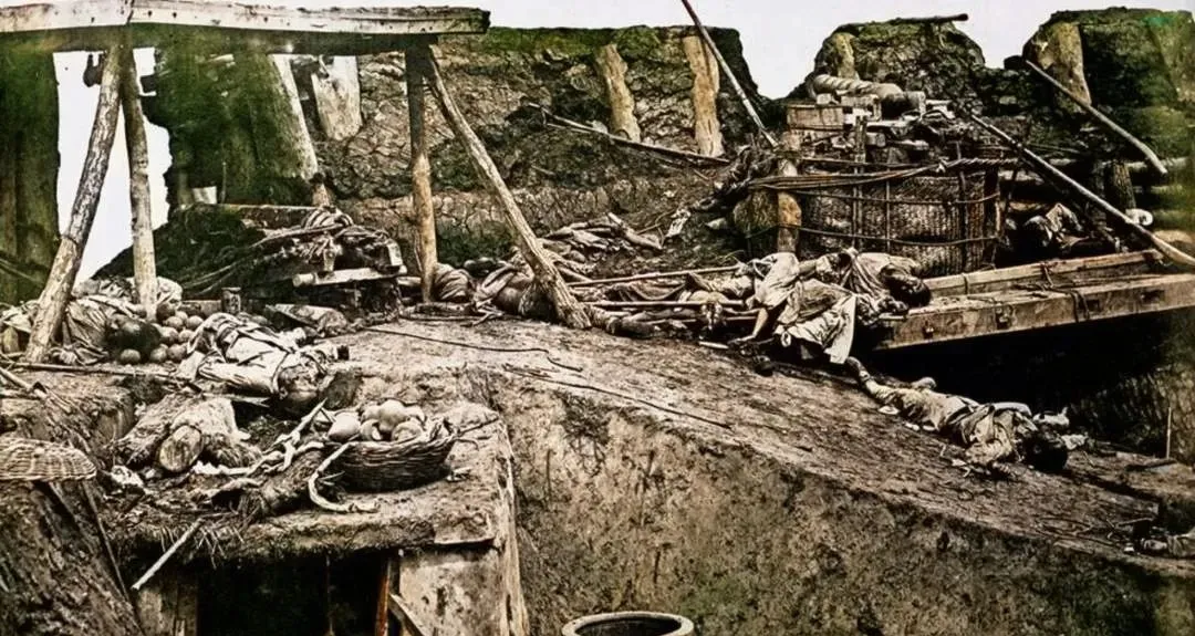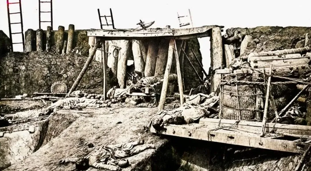 上色老照片重现第二次鸦片战争真实景象,大量清军战死炮台。